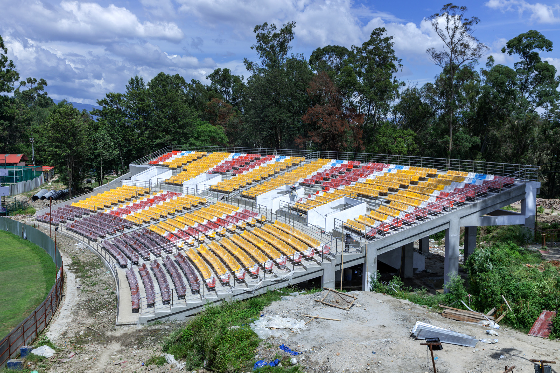 किर्तिपुर क्रिकेट मैदानमा अन्तर्राष्ट्रिय मापदण्ड अनुरुप पश्चिम पट्टिको सिटहरु जडान गर्ने कार्य अन्तिम चरणमा रहेको ।